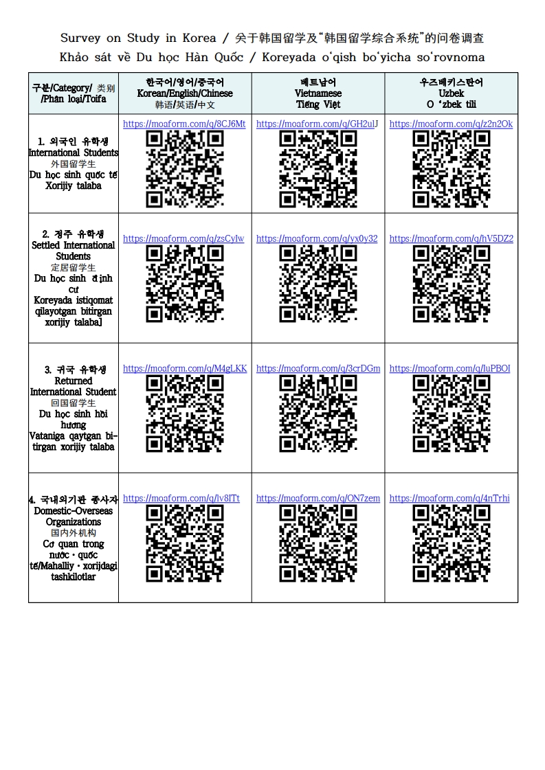 | 제목 | 한국유학 수요 및 만족도 설문조사 | ||||